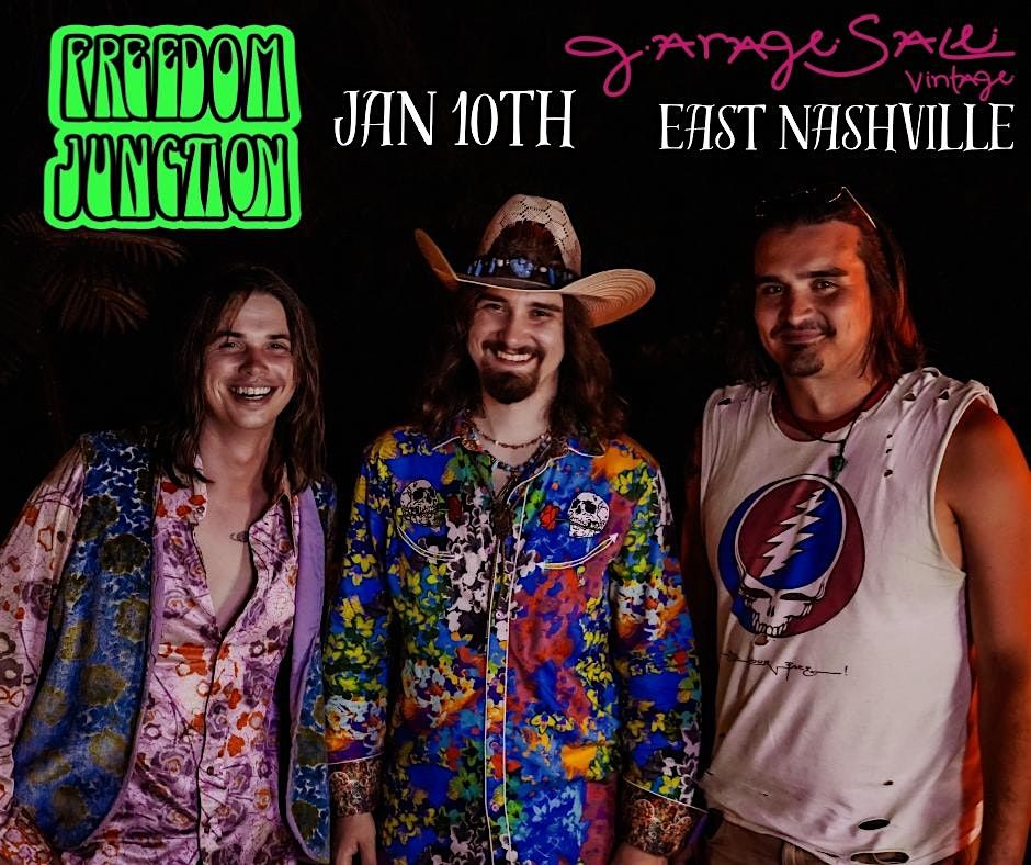 Get ready to groove with Freedom Junction, the Nashville-based funk rock trio that's taking the scene by storm! Featuring Sugarlegg (guitar, keys, vocals) of Daniel Donato's Cosmic Country, Noah Winner Miller, and Captain Chris Kirk, this powerhouse trio is known for their electrifying live performances, which blend tight, funky rhythms with exciting jams and a psychedelic vibe that'll transport you to another dimension. With their unique blend of rock, funk, and jam, Freedom Junction is the perfect antidote to the ordinary – so buckle up, turn up, and get ready to join the junction!