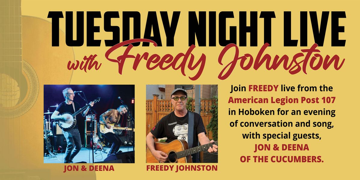 Freedy Johnston's Tues. Night Live with special guests Jon & Deena of The Cucumbers, April 21st, 2026 at the American Legion Post 107 in Hoboken. 8-9pm