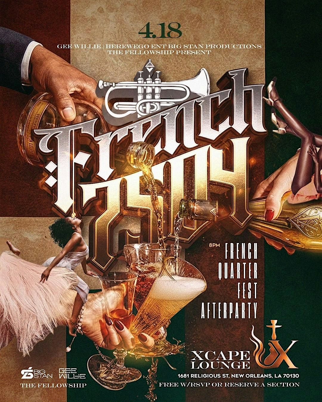 GEEWILLIE, HEREWEGO ENT., BIG STAN PRODUCTIONS & THE FELLOWSHIP present... FRENCH 7504 French Quarter Fest After Party on SAT 04/14 @ XCAPEAbout this Event