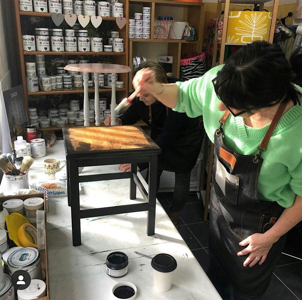 Friendly, informal, fun, furniture painting workshops, in small groups (max 4 people) come and find out all about Frenchic paints and products, recycle a small end / lamp table to take home.