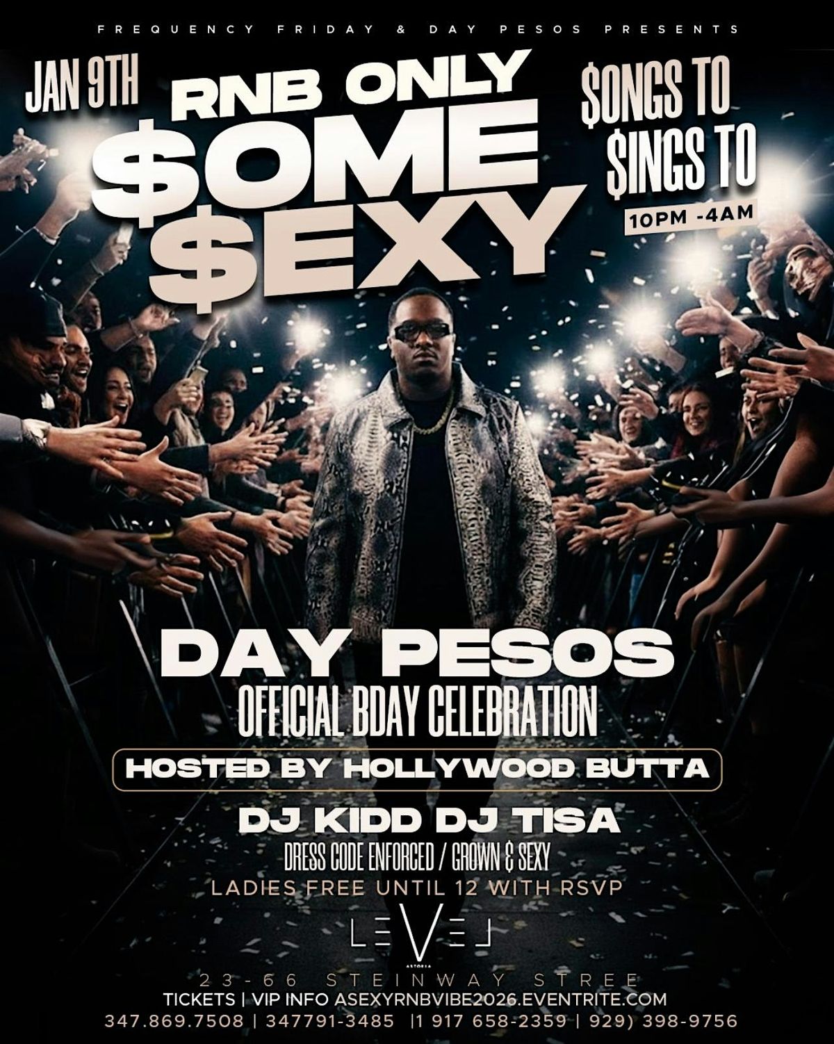 Celebrate Day Pesos’ official birthday at Frequency Fridays , an R&B-only, grown & sexy night hosted by Hollywood Butta with DJs Kidd and Tisa spinning all night. Expect a high-energy VIP experience, bottle service, and a packed dance floor.
