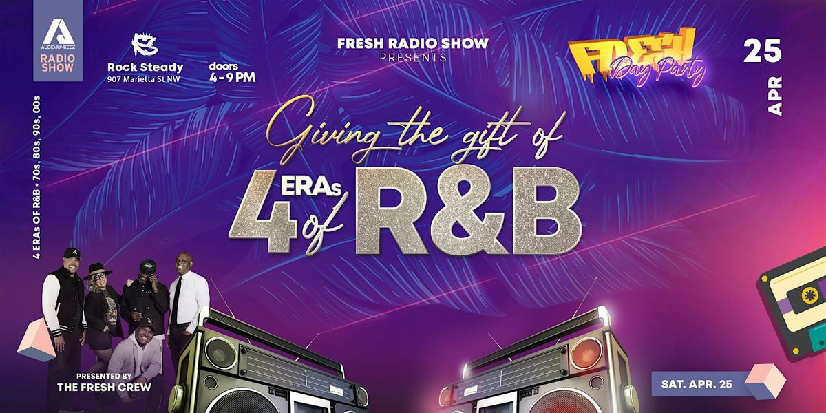 READY TO CELEBRATE 4 ERAs OF R&B FRESH STYLE? FRESH IS GIVING YOU THE GIFT OF '4 ERAs OF R&B' THIS MONTH. I HOPE YOU ARE READY TO SING-A-LONG! WE ARE BACK WITH FRESH DAY PARTY NO.26 HAPPENING ON SAT. APR. 25TH IN TTHE GALLERY @rocksteadyatlanta from 4-9p.