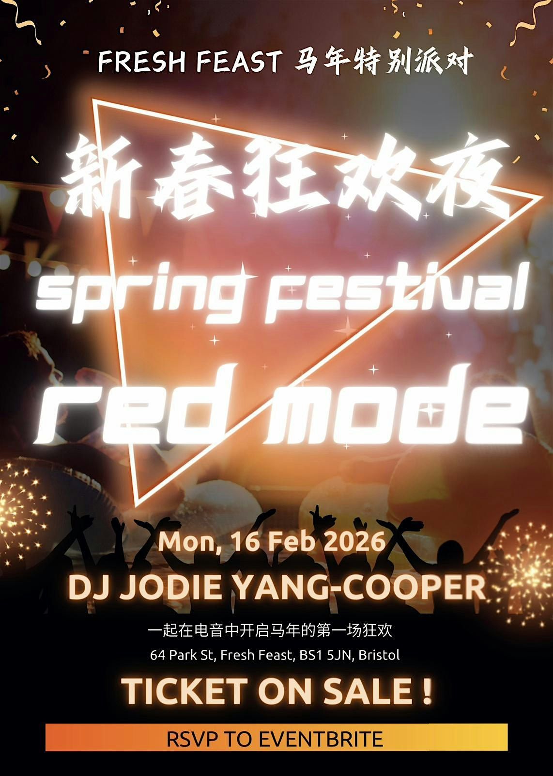 Get ready for an epic night at the Fresh Feast Chinese Spring Festival! Join us in person for an unforgettable celebration filled with vibrant vibes and the coolest beats. Our DJ Jodie Yang-Cooper will be spinning until 2.30am, with the bar staying open until late, so bring your best moves and party non-stop. Don’t miss out on this awesome event where good drinks, great music, and amazing company come together. Let’s make it a night to remember!