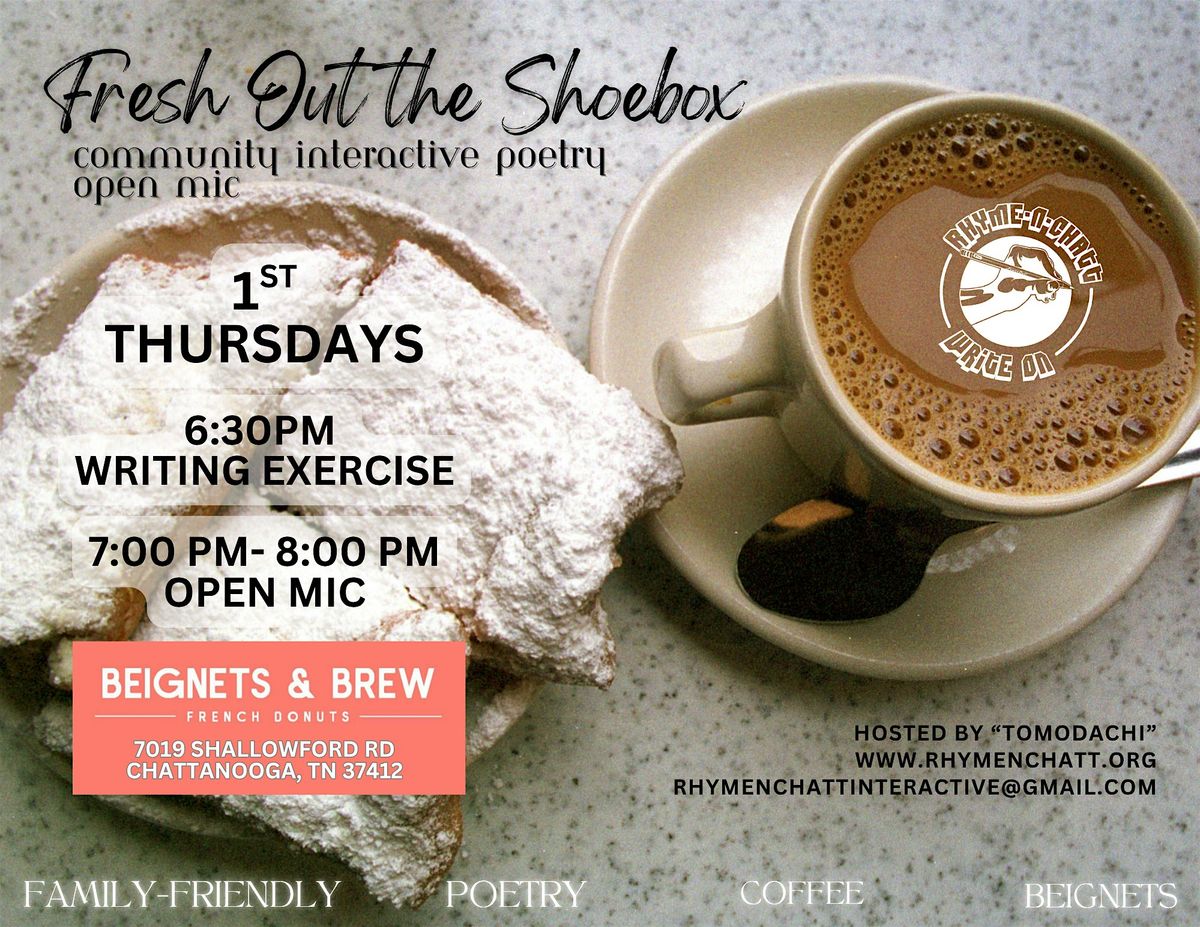 Come join us in person for a night of raw creativity and community vibes every first Thursday! Whether you’re a poet, a listener, or someone who loves good energy, our Interactive Poetry Open Mic is the spot to share your voice and connect. Bring your words, your passion, and an open heart. Let’s make magic fresh out the shoebox together!