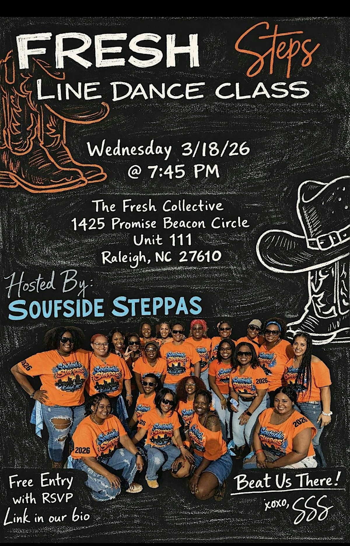 Pull up and learn a few trail ride style line dances with the Soufside Steppas for FREE!