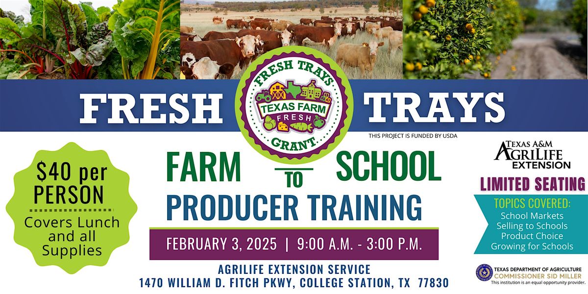 Join us for the FRESH TRAYS Producer Training Workshop. We’re excited to invite farmers, ranchers, and food producers to an opportunity to expand their markets and connect directly with schools through the FRESH TRAYS Producer Training Workshop.