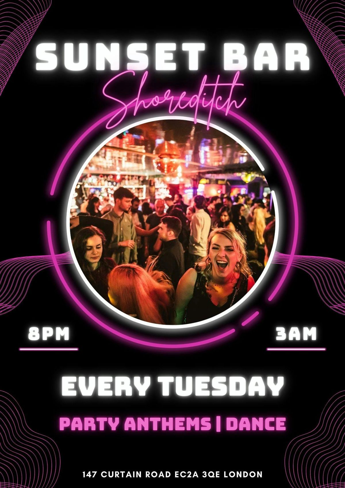 SUNSET BAR Every Tuesday // Sunset Bar Shoreditch // Commercial, Dance. Party Anthems🌅 Looking for the best bar in Shoreditch for your next night out? Welcome to Sunset Bar – the ultimate late-night cocktail bar with a speakeasy vibe and the latest license in the area, serving drinks until the early hours. 🍸✨
