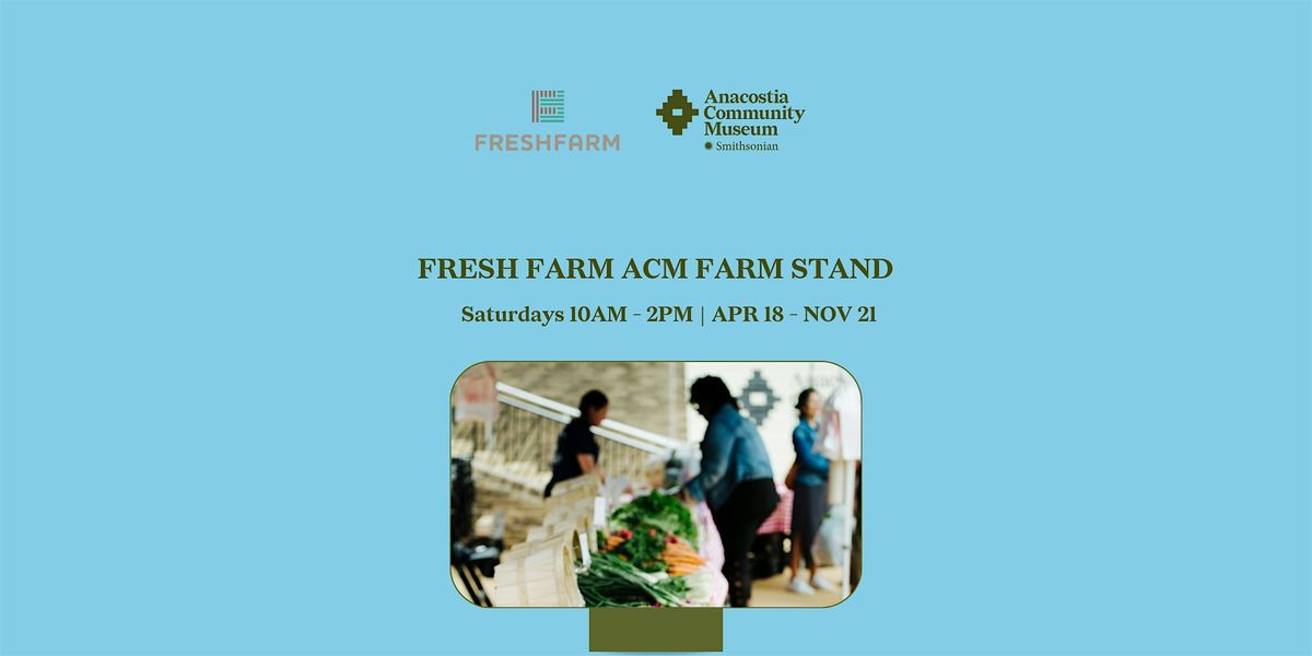 The FRESHFARM ACM Farm Stand takes place on the outdoor plaza of the Smithsonian's Anacostia Community Museum (1901 Fort Place, SE Washington, DC 20020) every Saturday (10 a.m. to 2 p.m.) from April 18 - November 21, 2026.*