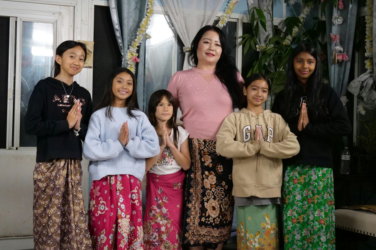 Photo: Choummaly Keodara in her Fresno homestudio with her 6 students ages 10-13. Photo credit: Betty Marin, 2023.