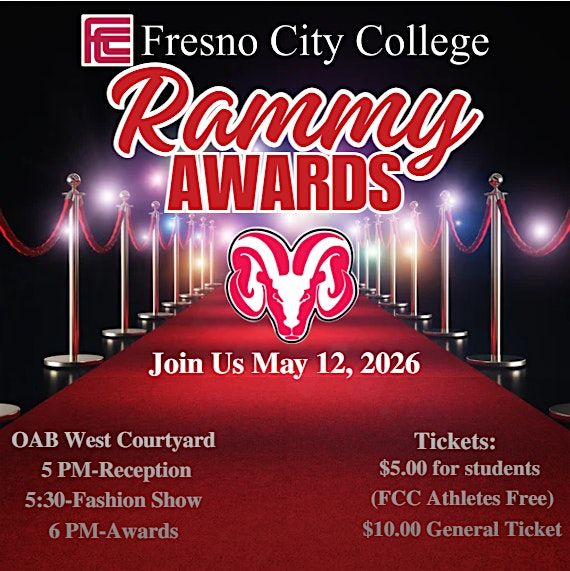 Fresno City College Athletics proudly presents The Rammy Awards, an annual ceremony dedicated to recognizing the outstanding achievements, commitment, and excellence of our student-athletes. This distinguished event honors athletic performance, leadership, sportsmanship, and academic success across all athletic programs. The Rammy Awards will be held in the Old Administration Building at Fresno City College. The ceremony embodies the pride, tradition, and excellence of Fresno City College Athletics and serves as a meaningful tribute to those who contribute to the continued success of our program.