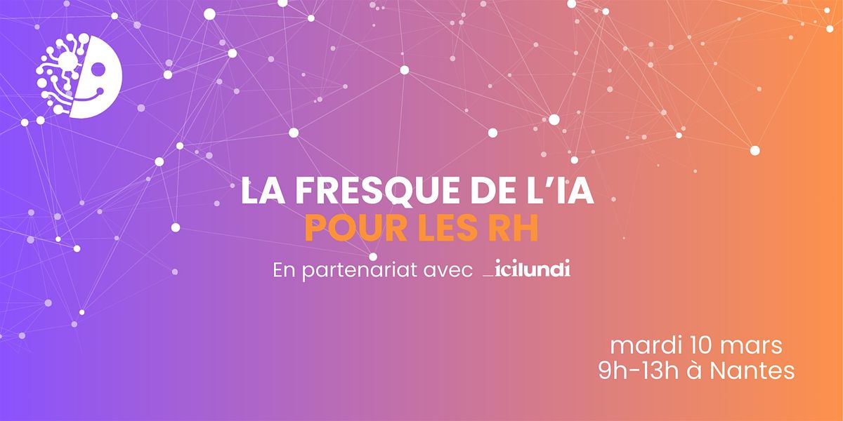 C'est pourquoi nous sommes ravis de vous proposer pour la toute première fois à Nantes l'atelier "La Fresque de l'IA pour les RH" organisé par Kalaapa et en partenariat avec Icilundi, le Mardi 10 mars de 8h45 à 13h00.