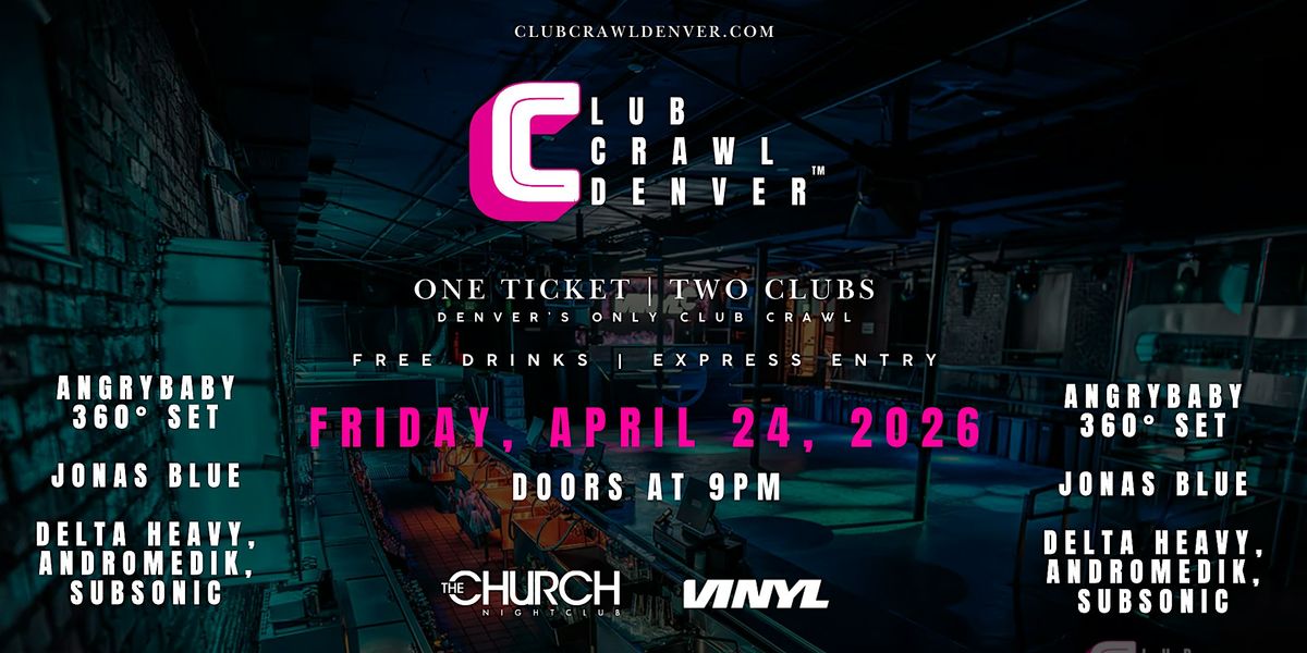 Club Crawl is Denver's #1 nightlife experience that brings you VIP express entry to both Church Nightclub and Club Vinyl and two complimentary drink tickets, all with one ticket.