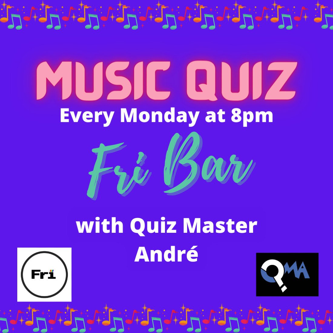 Fri Bar has music quiz EVERY Monday at 8pm. Come join us and the region's premier host: Quiz Master André. Music quiz is two rounds of hits from throughout the years - good music and good times. See you there!