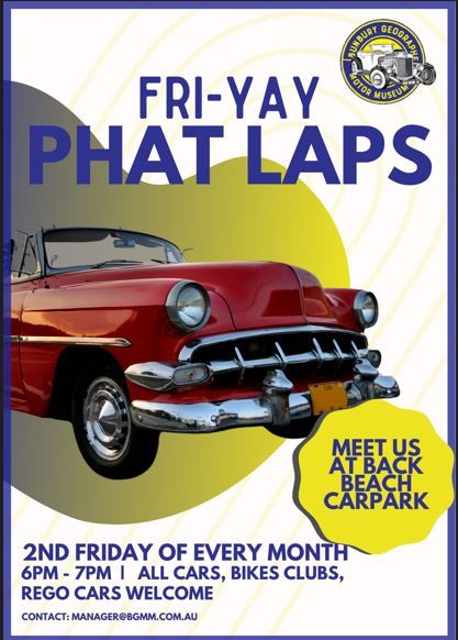 Here is the modern day car event - Friyay Phat Laps For The Locals is an event for car enthusiasts who want to help out some local business owners. The plan is for you to cruise down to Bunbury CBD, cut some phat laps, give your long lost friends a wave on the way past each other and then help out some locals on the way home.