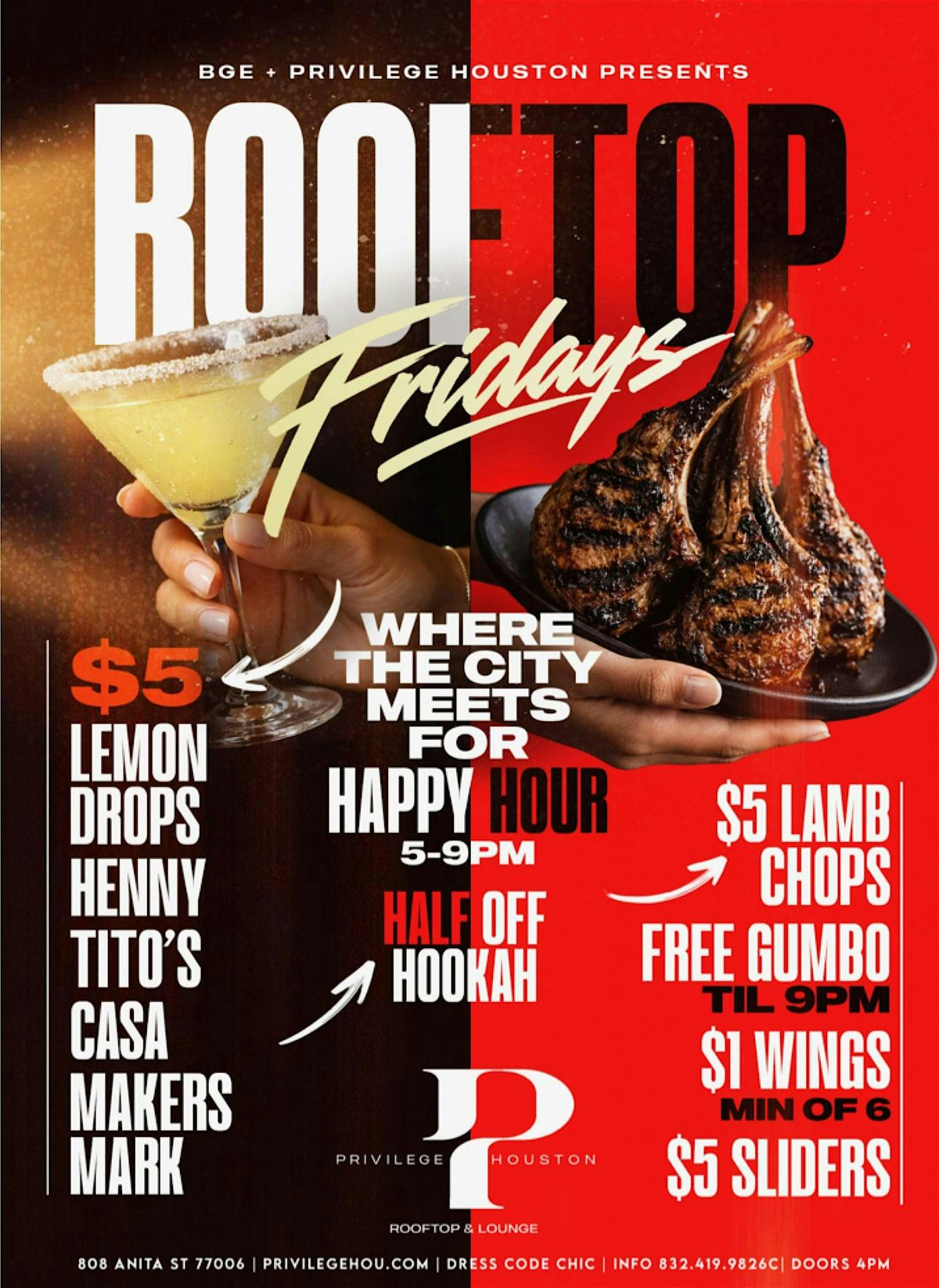 Kick off your Friday with unbeatable food & drink specials, good music, and grown vibes at Privilege.