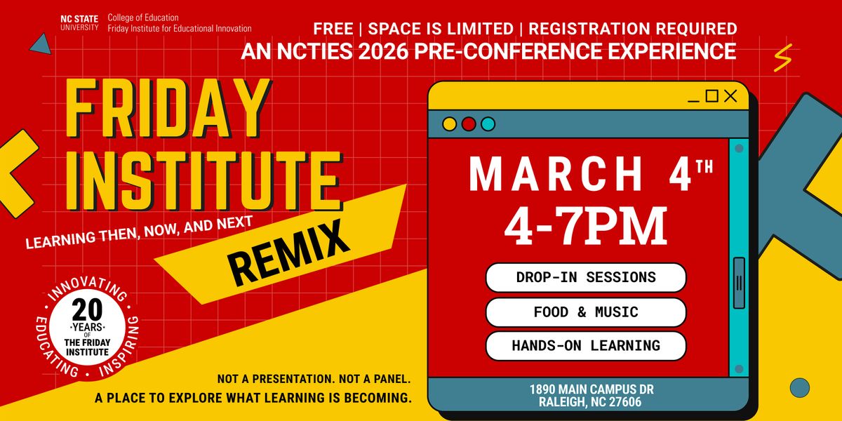 The Friday Institute believes that learning is social, rigorous, human-centered, and built through shared inquiry. Come ready to explore, question, and remix learning - together.