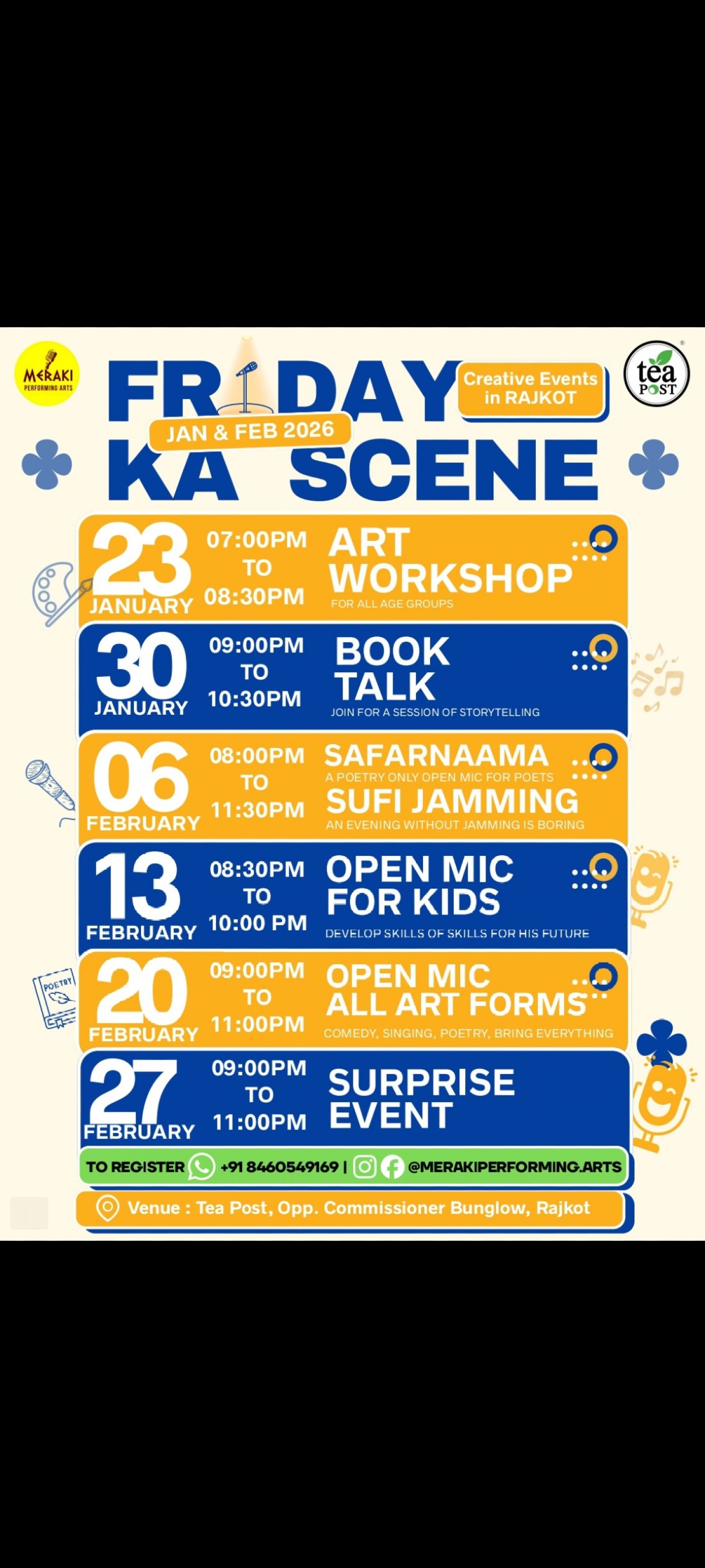 Every Friday, Meraki Performing Arts turns Tea Post into a creative playground where artists, audiences, and stories meet.