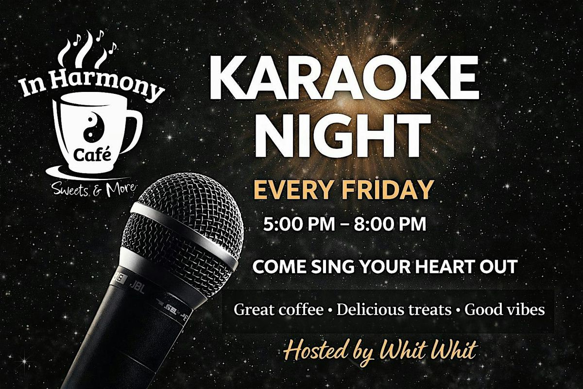 Get ready to belt out your favorite tunes at our Friday Karaoke Nights! Join us in person for a fun-filled evening of singing, laughter, and great vibes. Whether you’re a shower singer or a stage pro, everyone is welcome to grab the mic and shine. Bring your friends, pick your songs, and let's make Friday nights unforgettable!
