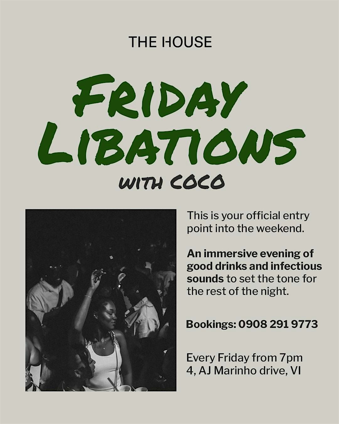 Free registration: https://ticket.reisty.com/event/Friday-Libations-With-Coco/4d44db8b-5f2e-4f15-95af-fecf72fdfb87?utm_source=instagram
