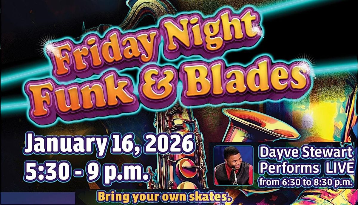 Join us for our Inagual Friday Night Funk & Blades with a LIVE Band and roller skate Disco-Funk-Music Fun. This is a FREE event but you must provide your own roller skates if you plan to skate. A Variety of food trucks will be on site along with a DJ and Live Music. Skating will be held under our large outdoor covered pavilion (rink) and seating for the live band will be on the lawn South of the Rink by the stage.