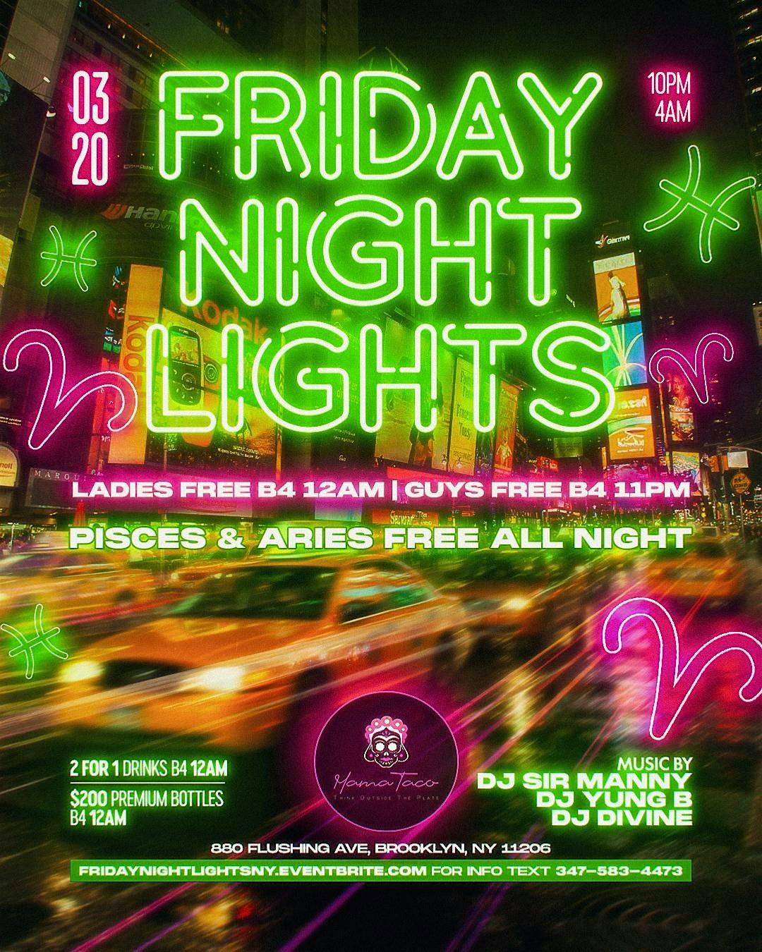 Friday Night Lights Everyone FREE B4 12am w/RSVP at Mama Taco Bk