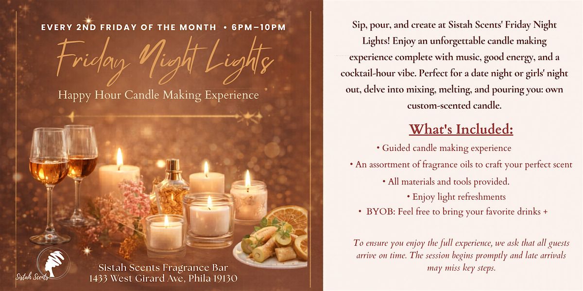 Friday Night Lights is your go-to experience for unwinding after the week while doing something creative, fun, and memorable. Whether you’re coming with friends, planning a date night, or just looking for something different to do—you’ll enjoy an evening filled with good energy, music, and candle-making.