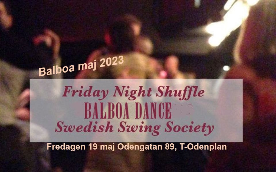 VÅRENS SISTA FRIDAY NIGHT SHUFFLE Missa inte sista FNS innan sommaren. Vi hälsar alla balboadansare välkomna och spelar nybörjarvänlig musik den första timmen.
