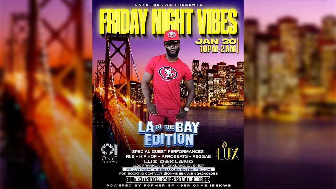 Join Us For Friday Night Vibes LA To The Bay Edition @ Lux Oakland. This Monthly Event Will Feature Vibes From LA To The Bay Under 1 Roof.