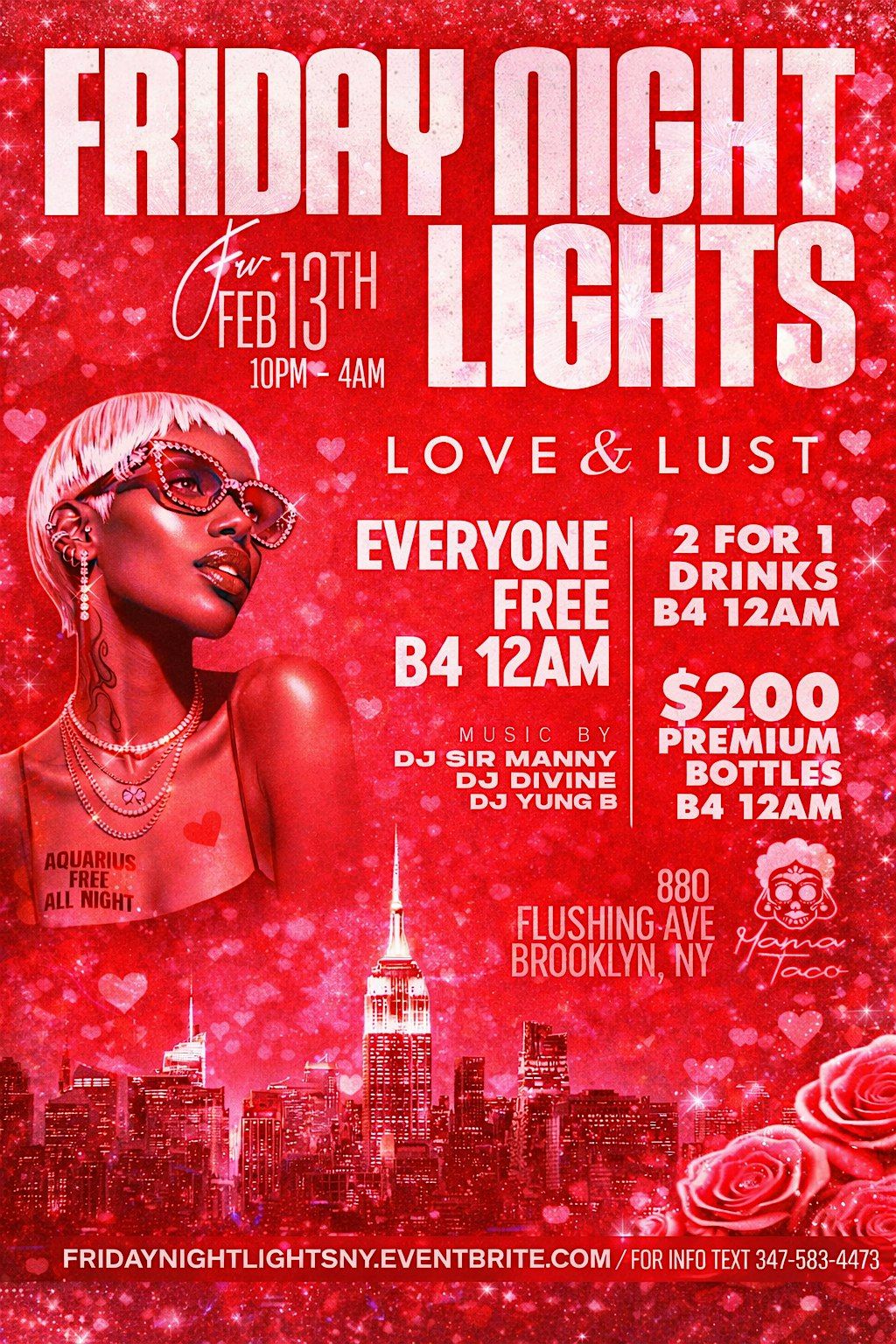 Friday Nights Lights Love & Lust at Mama Taco Everyone FREE B4 12am