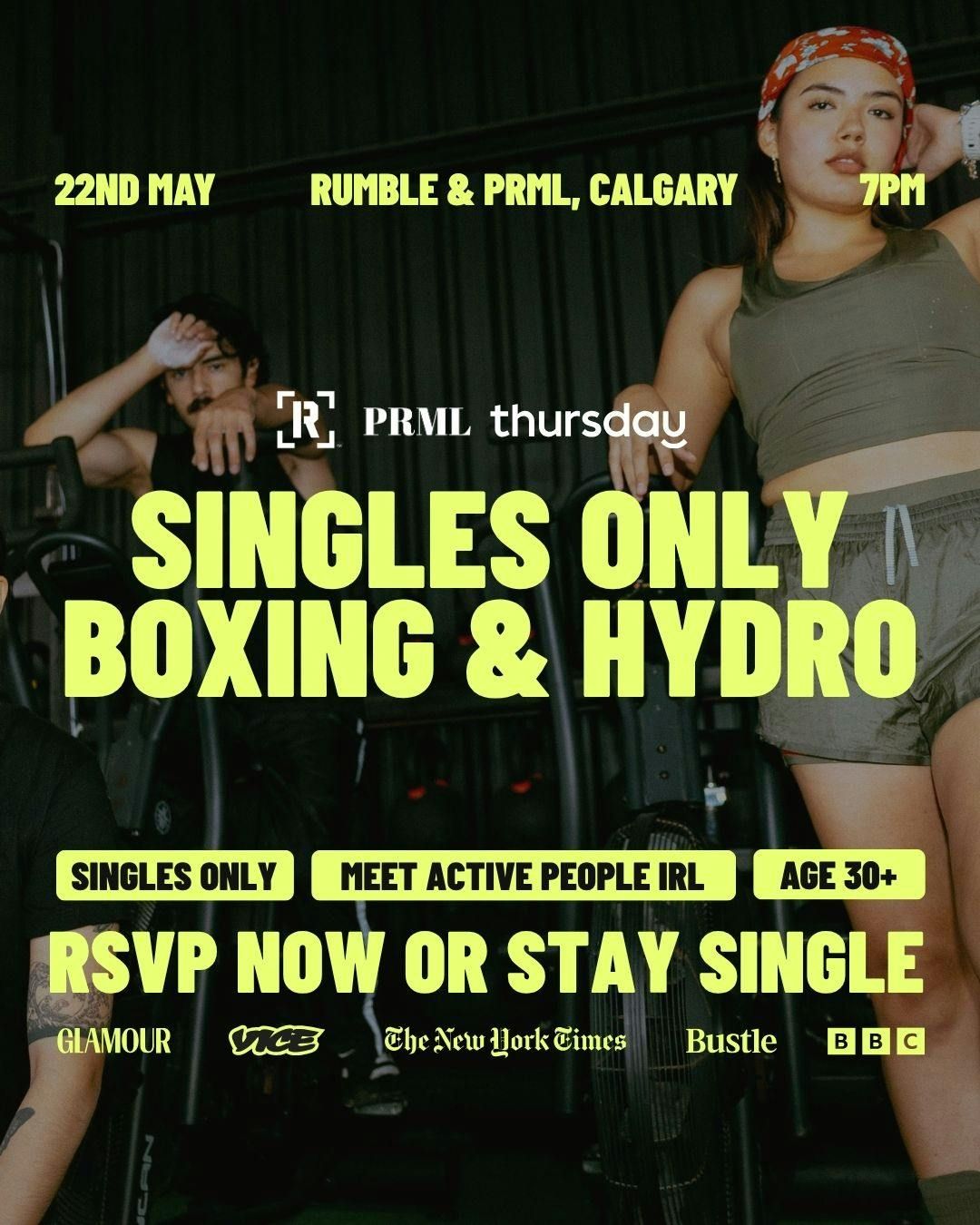Weâre taking over Rumble Boxing for a night that kicks off with a 30-minute bag class to get the heart pumping, followed by flirty partner drills (donât worry â youâll rotate through and meet everyone).Â