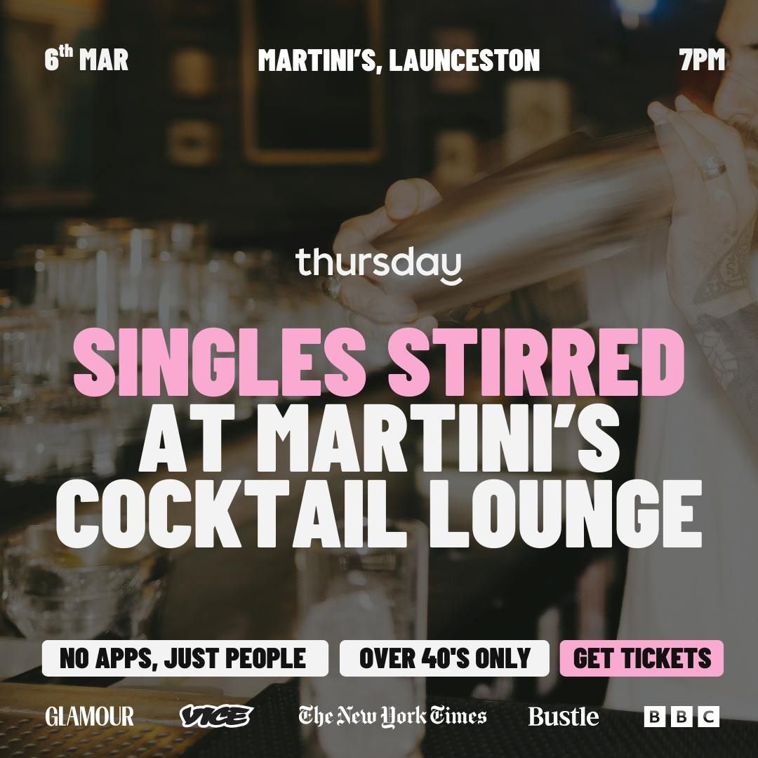 ![Friday | Singles Stirred at Martini's [over 40's] | Launceston](https://cdn-ip.allevents.in/s/rs:fill:500:250/g:sm/sh:100/aHR0cHM6Ly9jZG4tYXouYWxsZXZlbnRzLmluL2V2ZW50czkvYmFubmVycy8wNjEwOGFlMC0xNDJjLTExZjEtOGExNi1hZjhiNWY1ZTg3MzktcmltZy13MTA4MC1oMTA4MC1kYzE5MWIxNi1nbWlyLmpwZz92PTE3NzIyMzE0NzQ.avif)