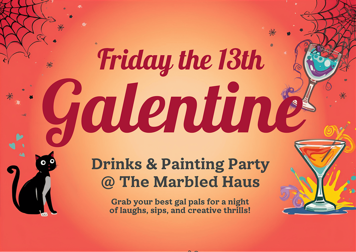 Get ready for a spooky twist on your usual Galentines! Join us in person for a night full of laughs, good vibes, and great company. It’s the perfect chance to celebrate friendship and painting. We will have drinks, charcuterie, and desserts! Don’t miss out on the fun and surprises we have planned. Come hang out, make memories, and embrace the Friday the 13th magic with your favorite crew!