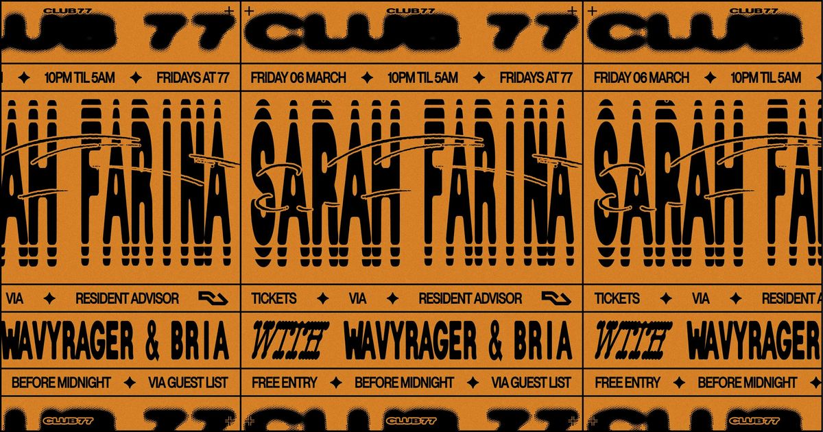 Event Info & Guest List: https://www.club77.com.au/events/fridays-at-77-sarah-farina