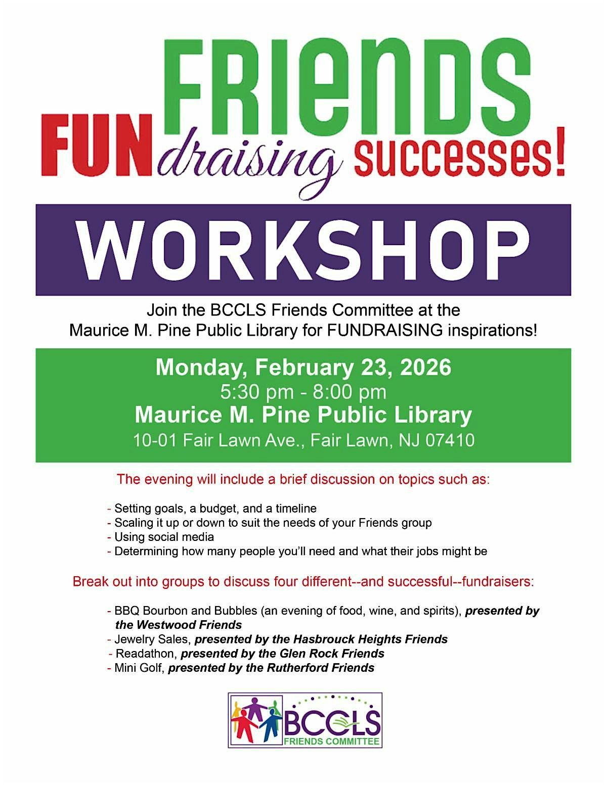 Please note the NEW SNOW DATE - Join the BCCLS Friends Committee at the Maurice M. Pine Public Library for FUNDRAISING inspirations!About this Event