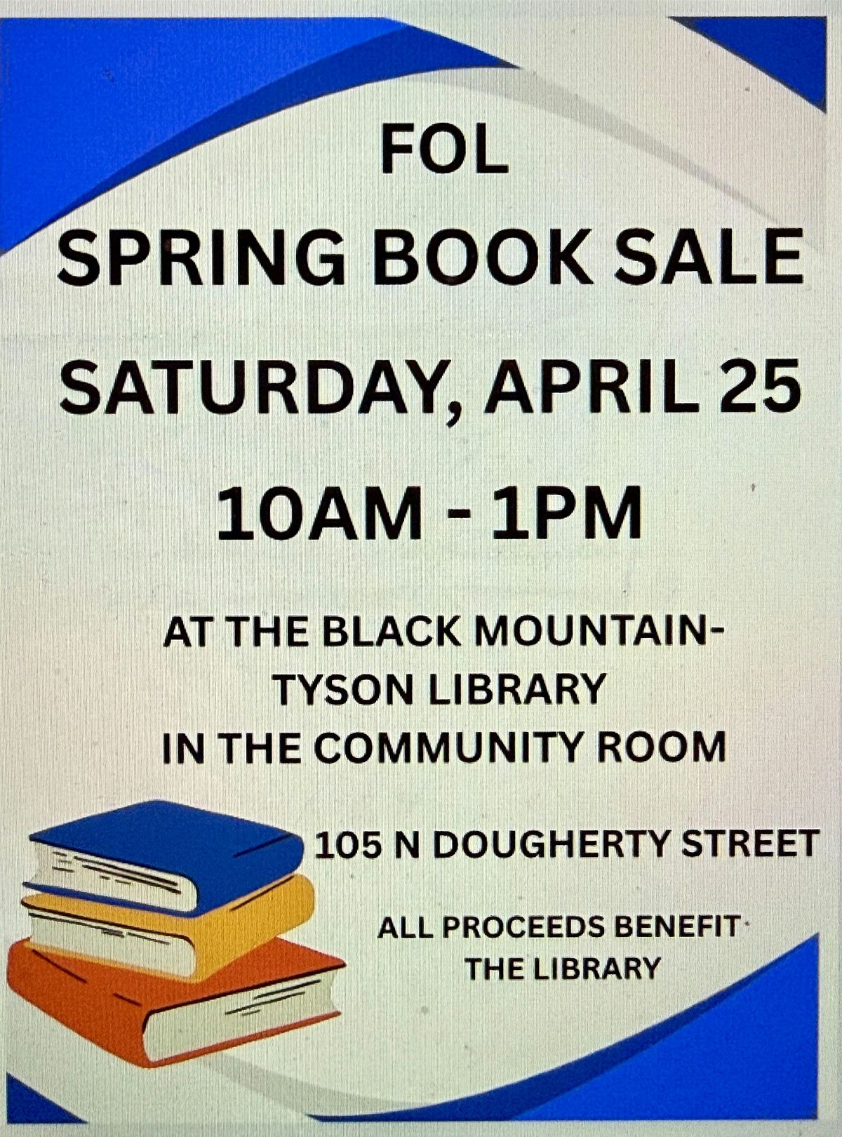 Is your TBR (to-be-read) stack in need of a refresh? Or maybe you’re shopping for Mother’s Day or a birthday--come spend a beautiful spring day in Black Mountain at the Friends of the Black Mountain Library Spring Book Sale from 10-1 on Saturday, April 25 in the Community Room of the Black Mountain Library.
