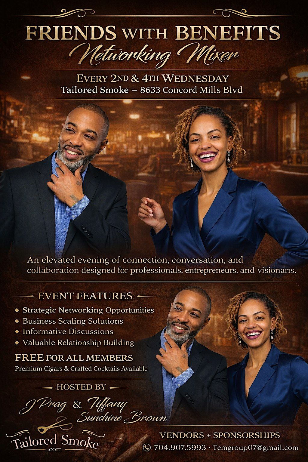 Join us for an elevated networking experience at Tailored Smoke Cigar Lounge (8633 Concord Mills Blvd) — where professionals, entrepreneurs, and visionaries come together to connect, collaborate, and grow.