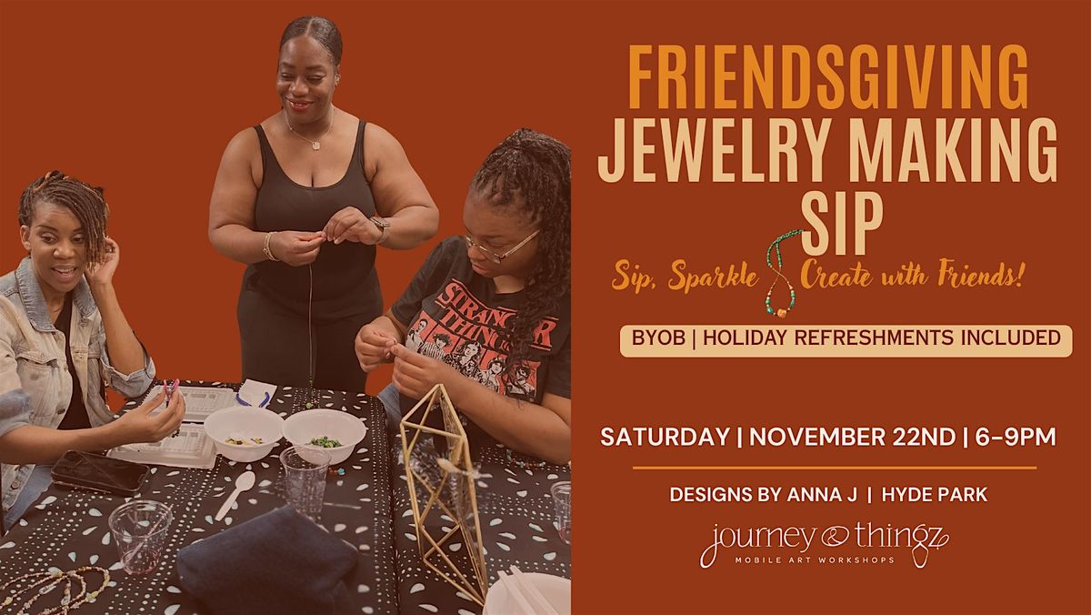Join us for an unforgettable evening of creativity, laughter, and good vibes at our Friendsgiving Jewelry Making & Sip event β hosted by artist Joy Joshua of Journey & Thingz in collaboration with Designs by Anna J.