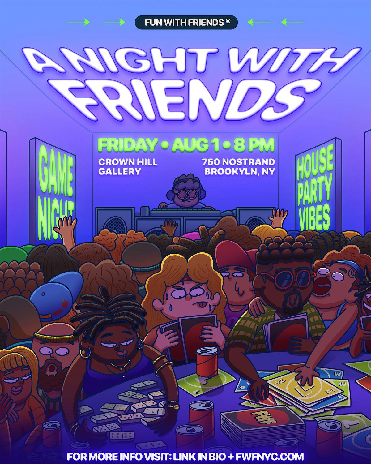 Friday, Aug 1 – A Night With FRIENDS (Game night + House party)