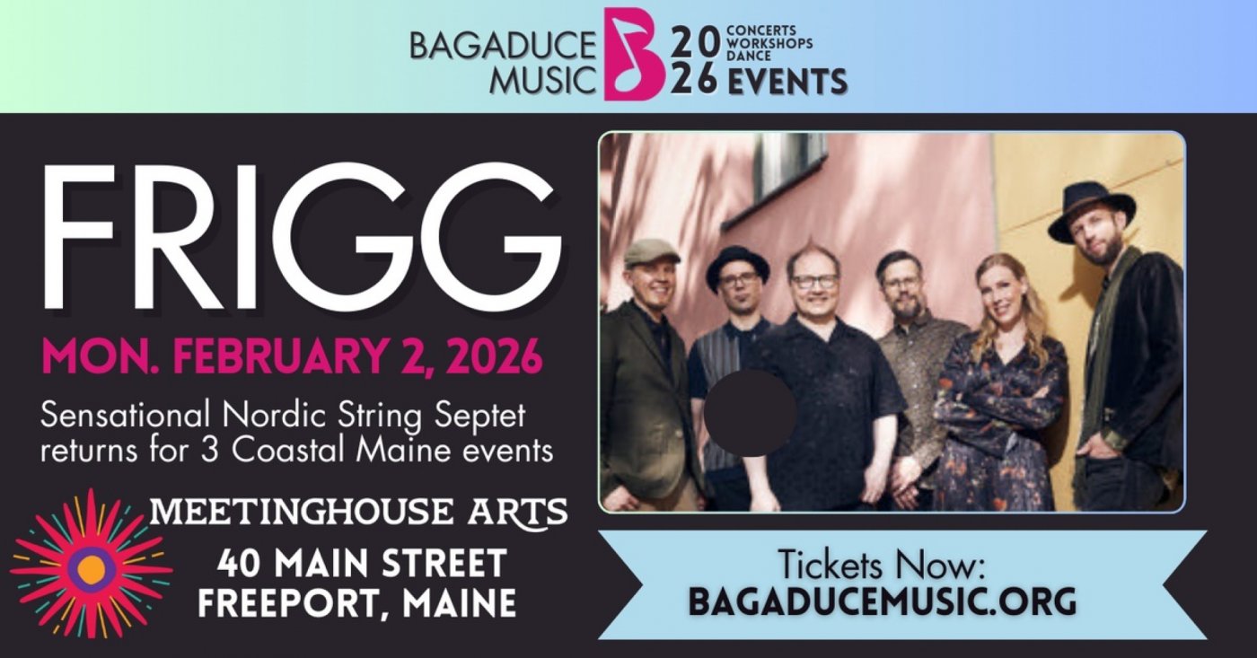 The internationally renowned Finnish folk band FRIGG concludes their Bagaduce Music Residency at Meetinghouse Arts in Freeport on Monday, February 2, presented by Bagaduce Music. Joining the band throughout the residency is Maine guitarist Noah Fishman.