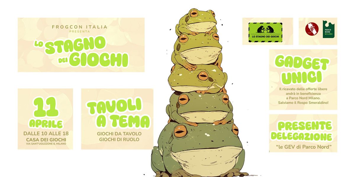 🐸 L'11 aprile Casa dei Giochi si colora di verde e si trasforma nello Stagno dei Giochi, per il primo evento di Frogcon Italia, in occasione del mese in cui cade il Save the Frogs Day!