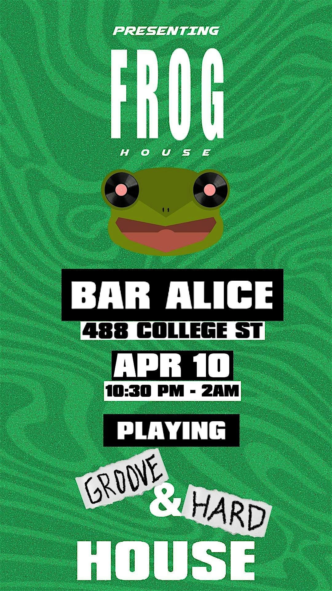 Froghouse is taking over the upstairs of Bar Alice. From 10:30 PM TO 2AM, Non stop party tracks all night long.
