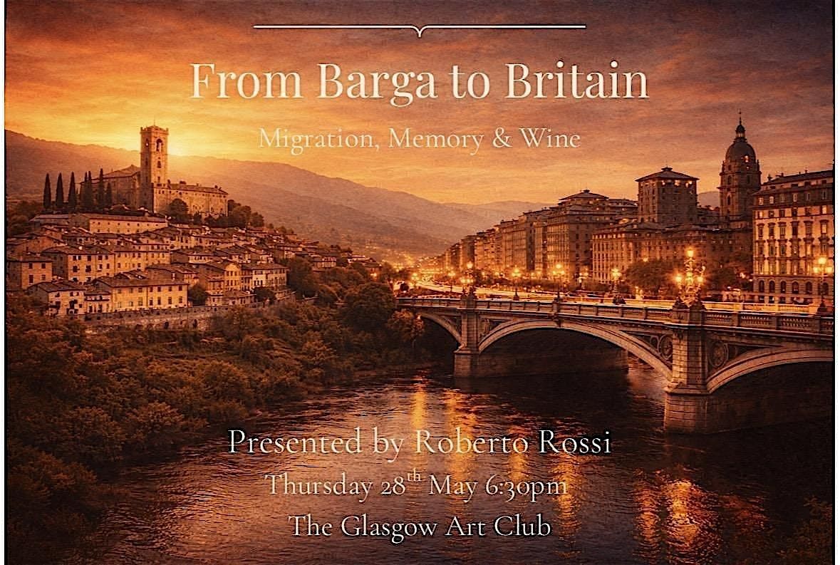Join us for a thoughtfully curated evening at The Glasgow Art Club exploring the remarkable journey of families who travelled from the hilltop town of Barga in northern Tuscany to the heart of Glasgow.