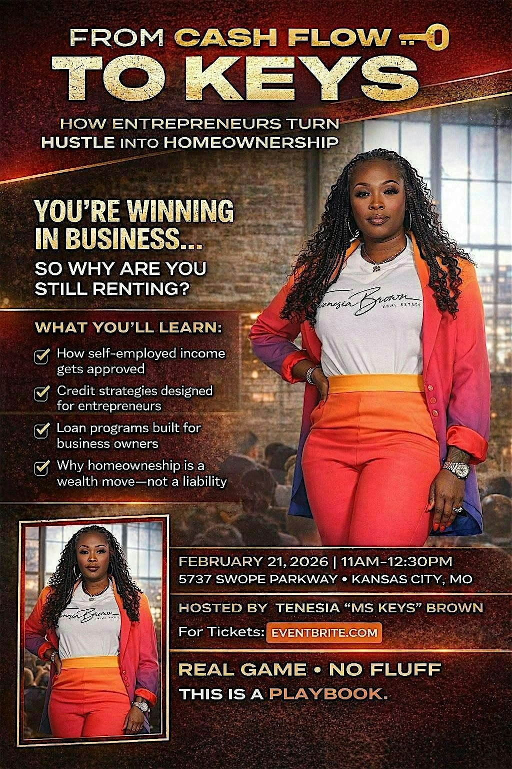 Join Ms Keys and Other Professionals as they show entrepreneurs how to become homeowners and more