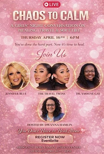 From Chaos to Calm is an intimate girls’ night experience for women who are healing, growing, and ready to rediscover life after toxic relationships.