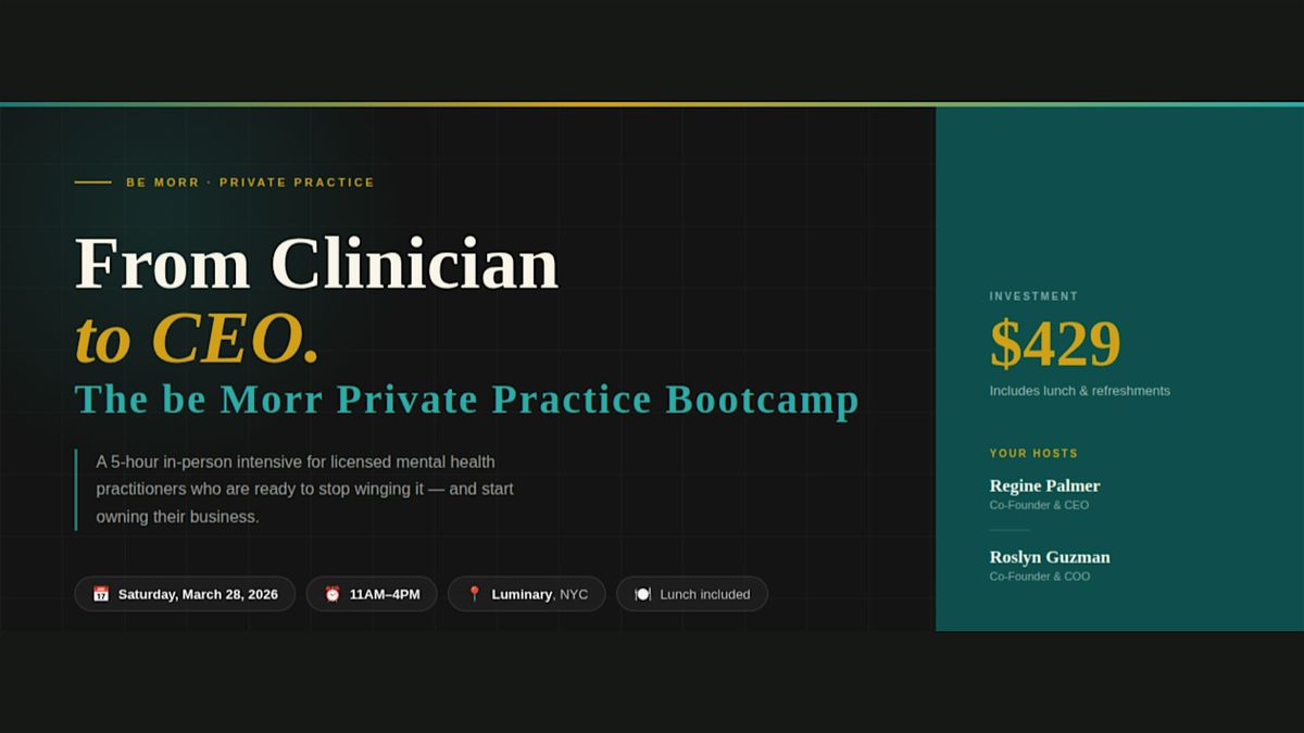 From Clinician to CEO : The be Morr Private Practice Bootcamp