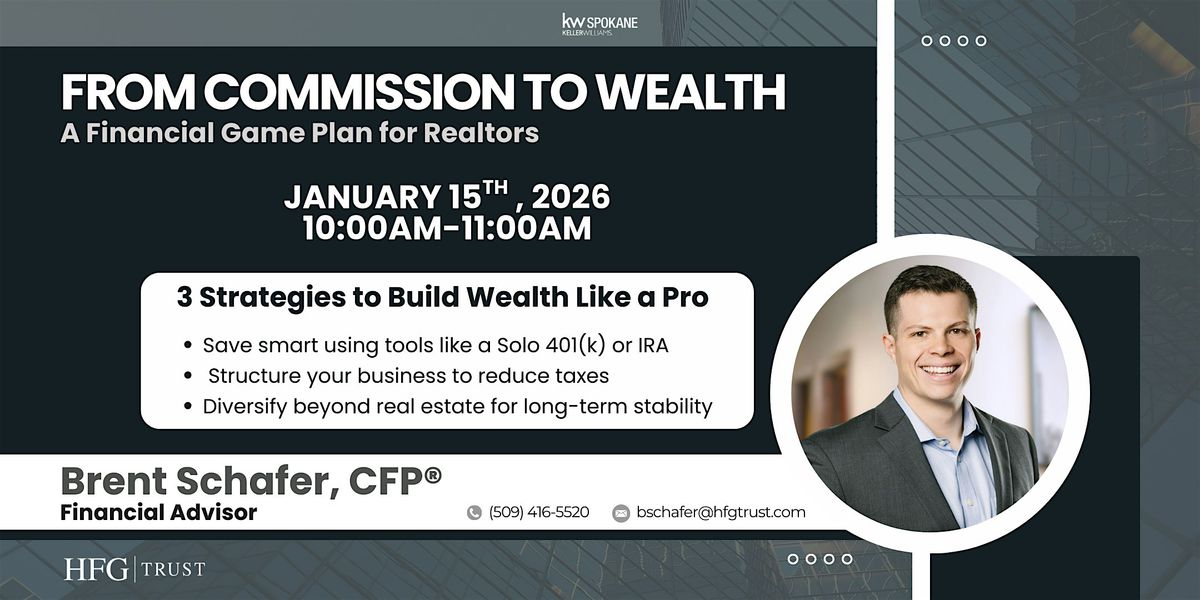 Join Brent Schafer, CFP®, Financial Advisor with HFG Trust, for a practical and approachable conversation focused on turning today’s commissions into tomorrow’s freedom.