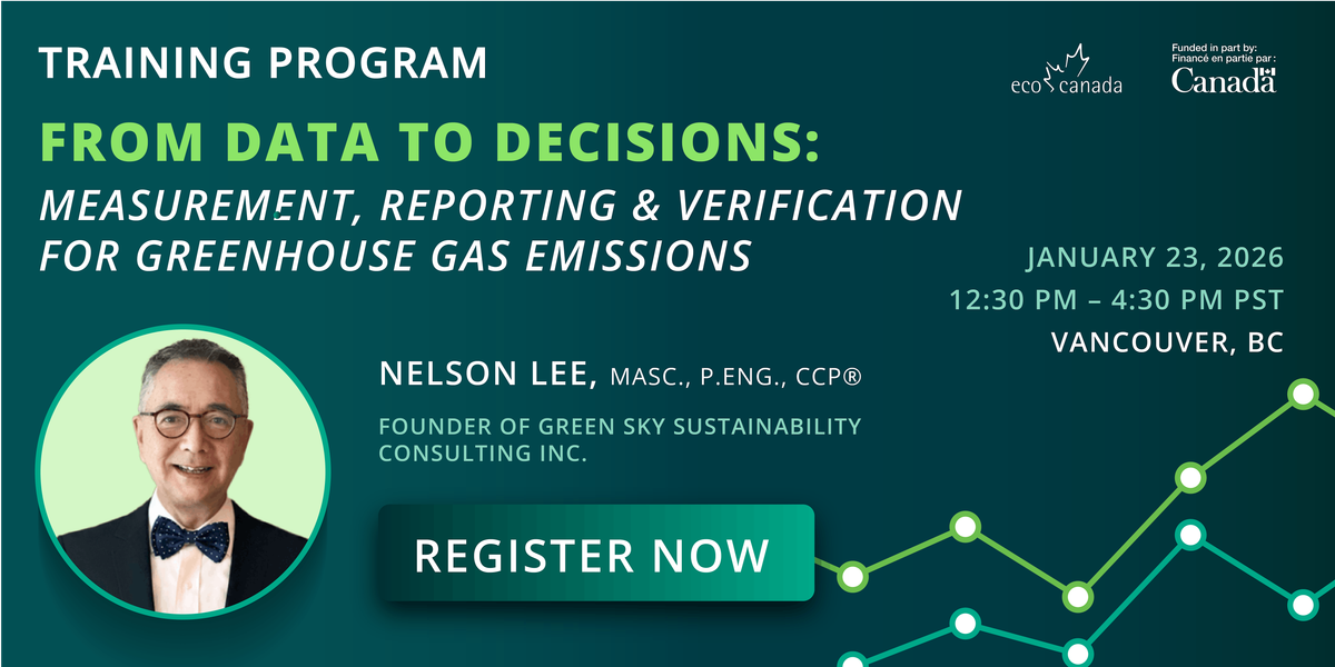 Join ECO Canada this training program is designed to build knowledge and practical skills in the measurement, reporting, and verification (MRV) of greenhouse gas emissions. Participants will gain an understanding of international MRV frameworks, sector-specific applications, and compliance requirements under national and global regulations. The course will also cover tools, methodologies, and best practices to support effective MRV implementation.