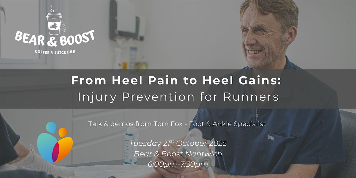 Join us upstairs at Bear & Boost, the café above Running Bear for an informative and engaging talk with Tom on foot and ankle pain and injuries. Tom will share his expert knowledge on common issues, their causes, and effective treatment approaches — including live demonstrations. Perfect for runners or anyone dealing with lower limb discomfort. Treat yourself to the delicious range of hot drinks, fresh smoothies and tasty treats offered by the establishment. Tuesday, 21st October, from 6:00 to 7:30 PM
