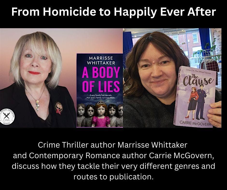 Bob Whittaker interviews Crime Thriller Author Marrisse Whittaker and Contemporary Romance author Carrie McGovern, on how they tackle their very different genres and routes to publication.