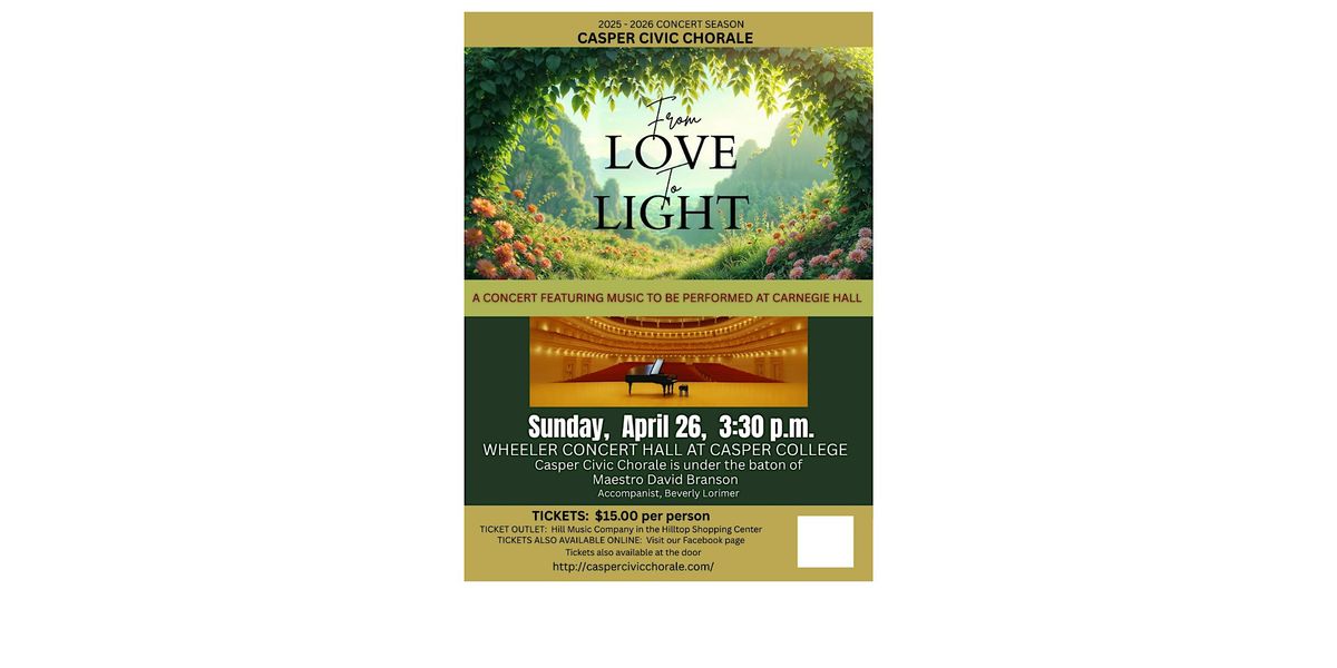 Casper Civic Chorale's Spring concert, "From Love to Light" will feature music that will be performed by the chorale at Carnegie Hall.